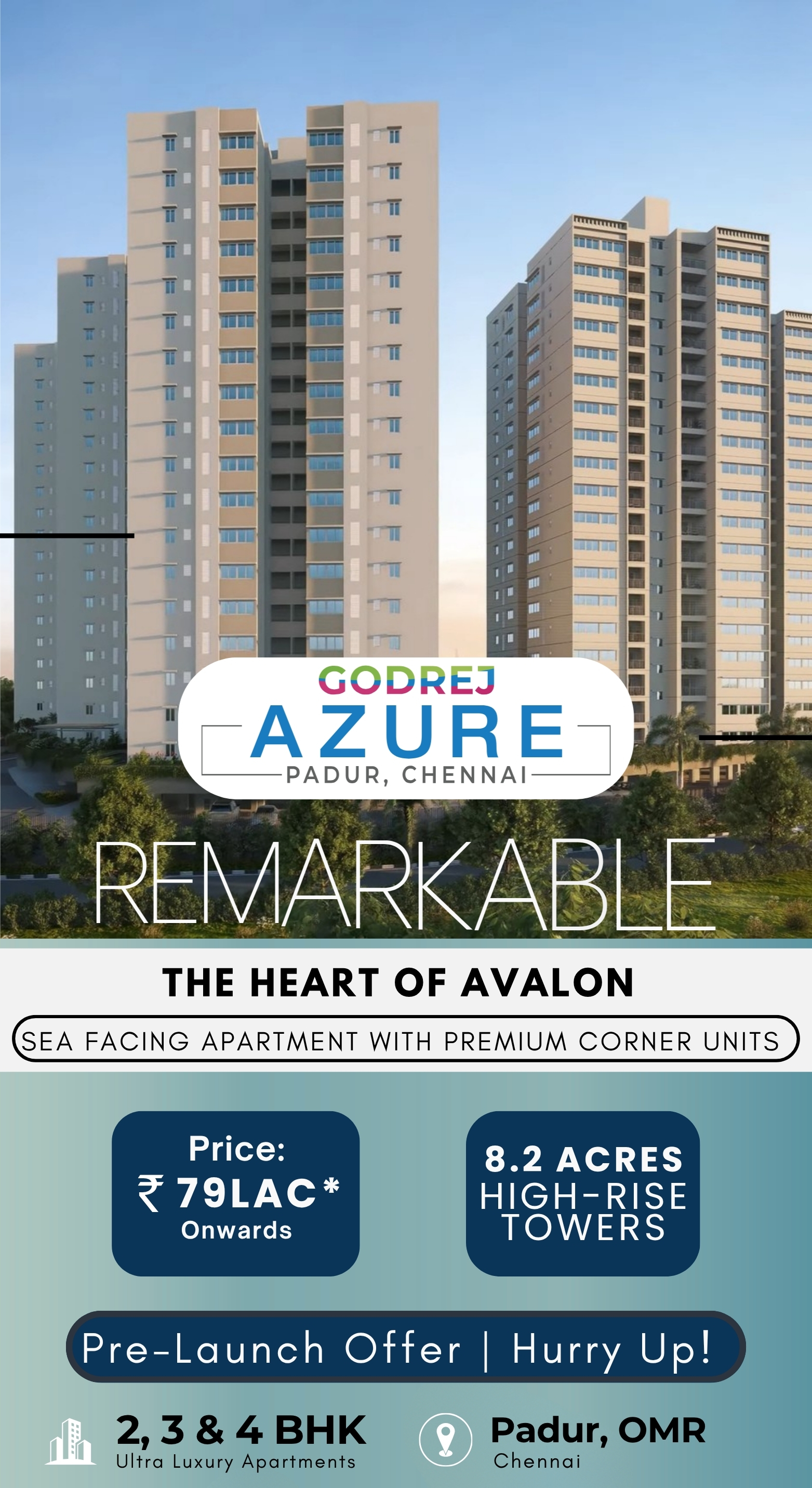 Experience a life of 24x7 conveniences at Godrej Azure, a premium residential community located in Padur, OMR, Chennai South . Spread across 8.27 acres, the project offers 436 exclusive units, Units launching phase 3 and phase 4, featuring spacious 2, 2.5 & 3 BHK apartments starting from ₹73.99 Cr onwards*. Choose from thoughtfully designed homes in Tower Olivine and Agate, offering the perfect blend of comfort and style. With ready-to-move-in status and the unique Home Capital down payment assistance program, Godrej Azure makes homeownership easier than ever in Chennai. Enjoy a lifestyle enriched with world-class amenities and seamless access to OMR’s IT hubs, educational institutions, and entertainment zones.